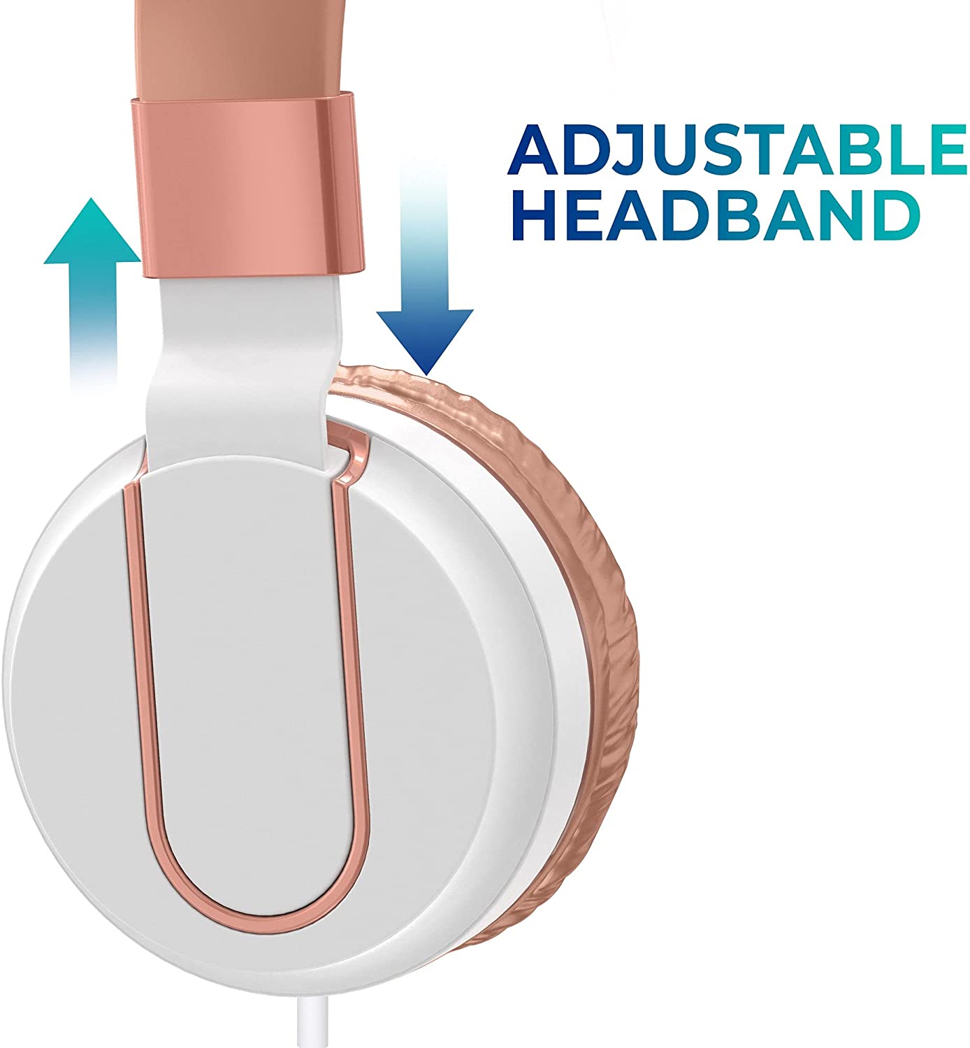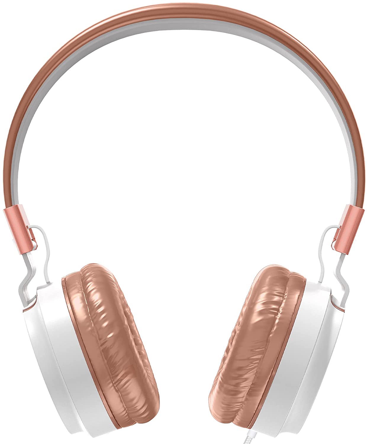 Delton Chroma Wired Headphones with Microphone, Wired On-Ear Headphones with in-Line Mic – 3.5MM Jack, Foldable, Lightweight for iOS and Android Smartphones, Laptops, PC, MP3 (Chroma Rose Gold)