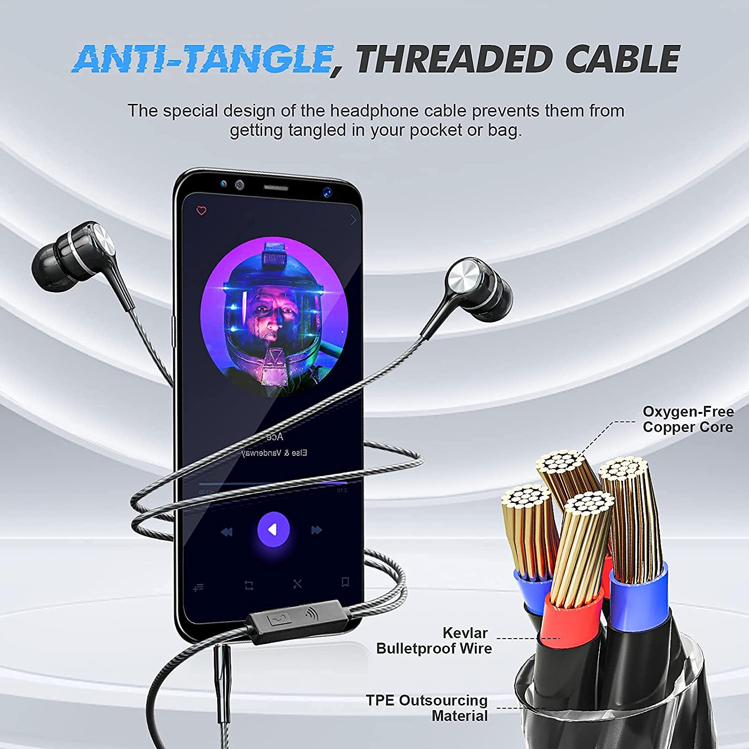 Earbuds Earphones Wired Headphones 5 Pack, Earbuds with Microphone Ear Buds Headphones Noise Canceling Wired Earphones Compatible with iPhone, Android Phones, iPod, iPad, MP3 Fits Most 3.5mm Jack