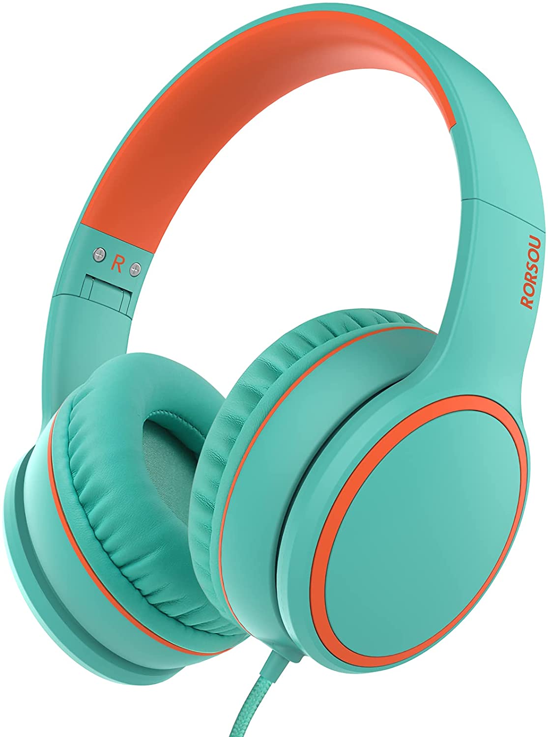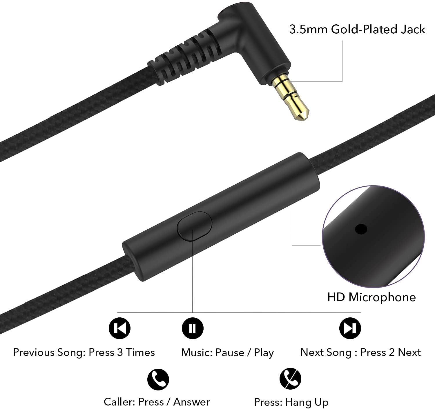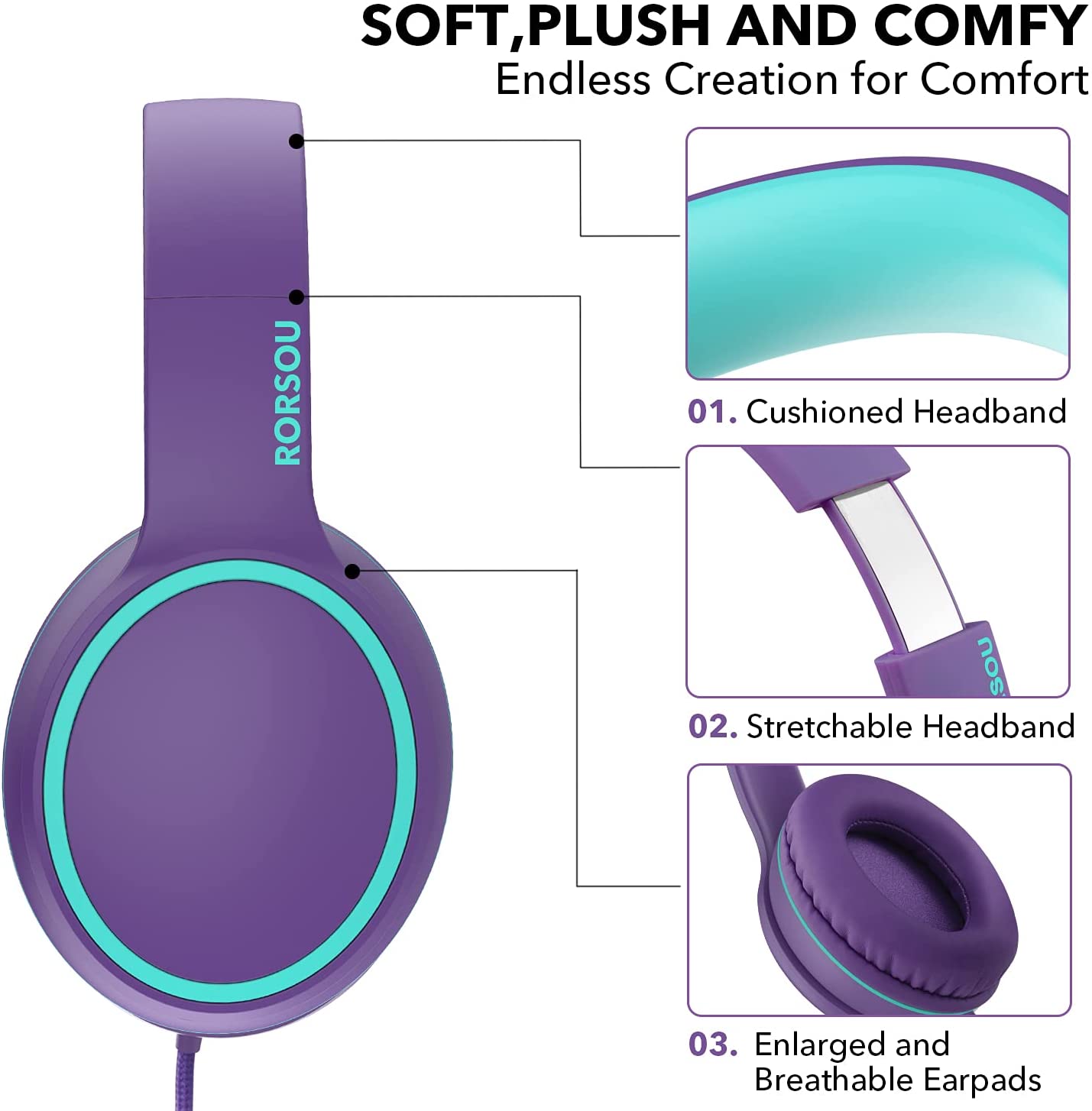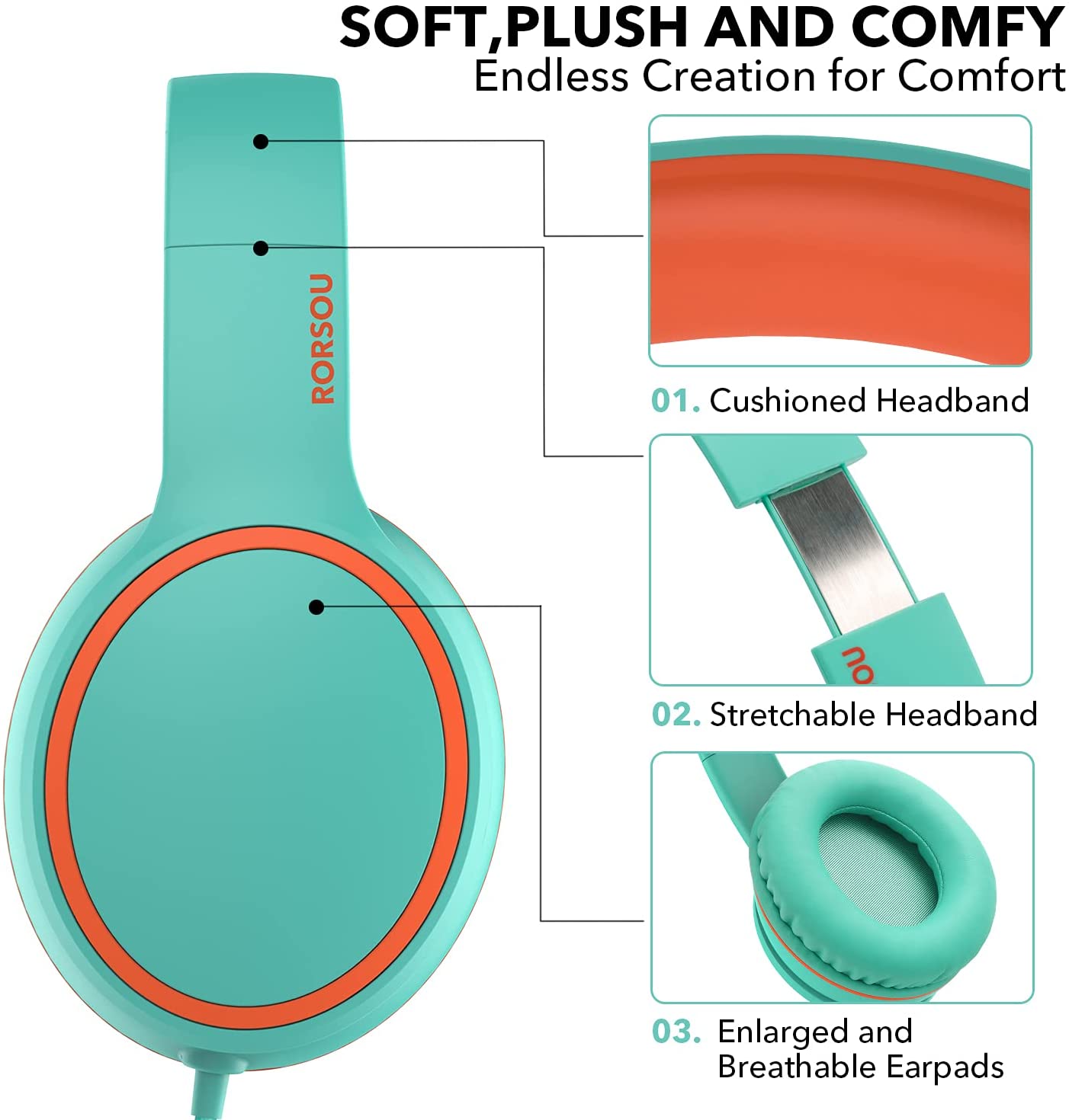 RORSOU R10 On-Ear Headphones with Microphone, Lightweight Folding Stereo Bass Headphones with 1.5M No-Tangle Cord, Portable Wired Headphones for Smartphone Tablet Computer MP3 / 4 (Black)