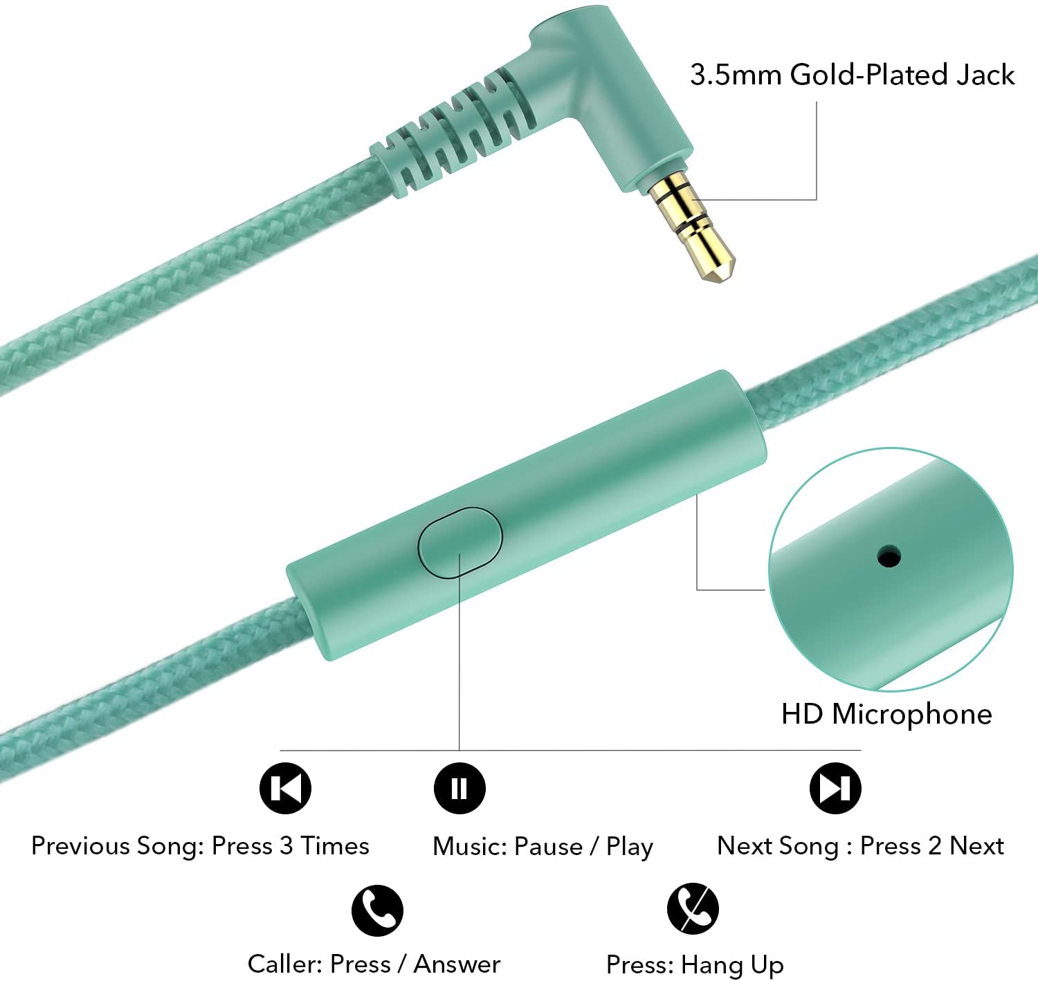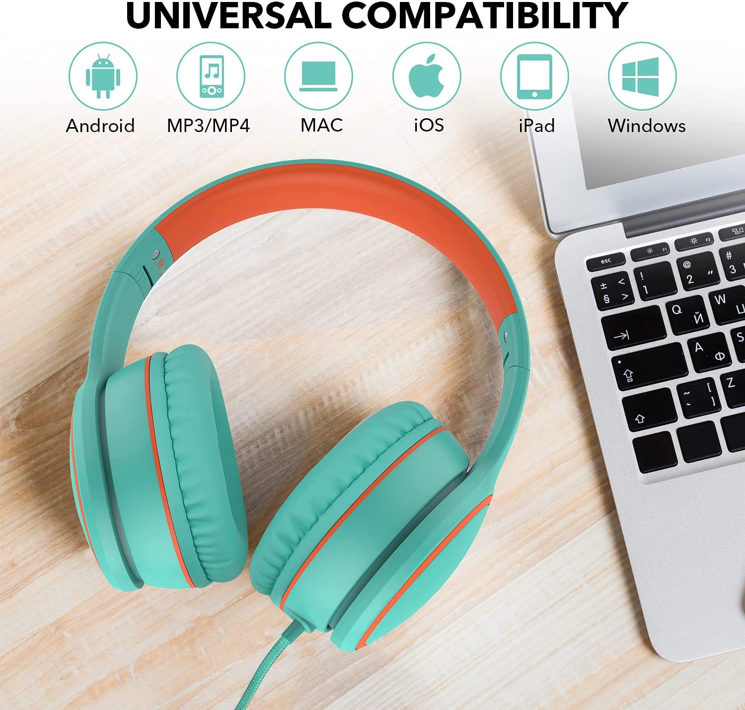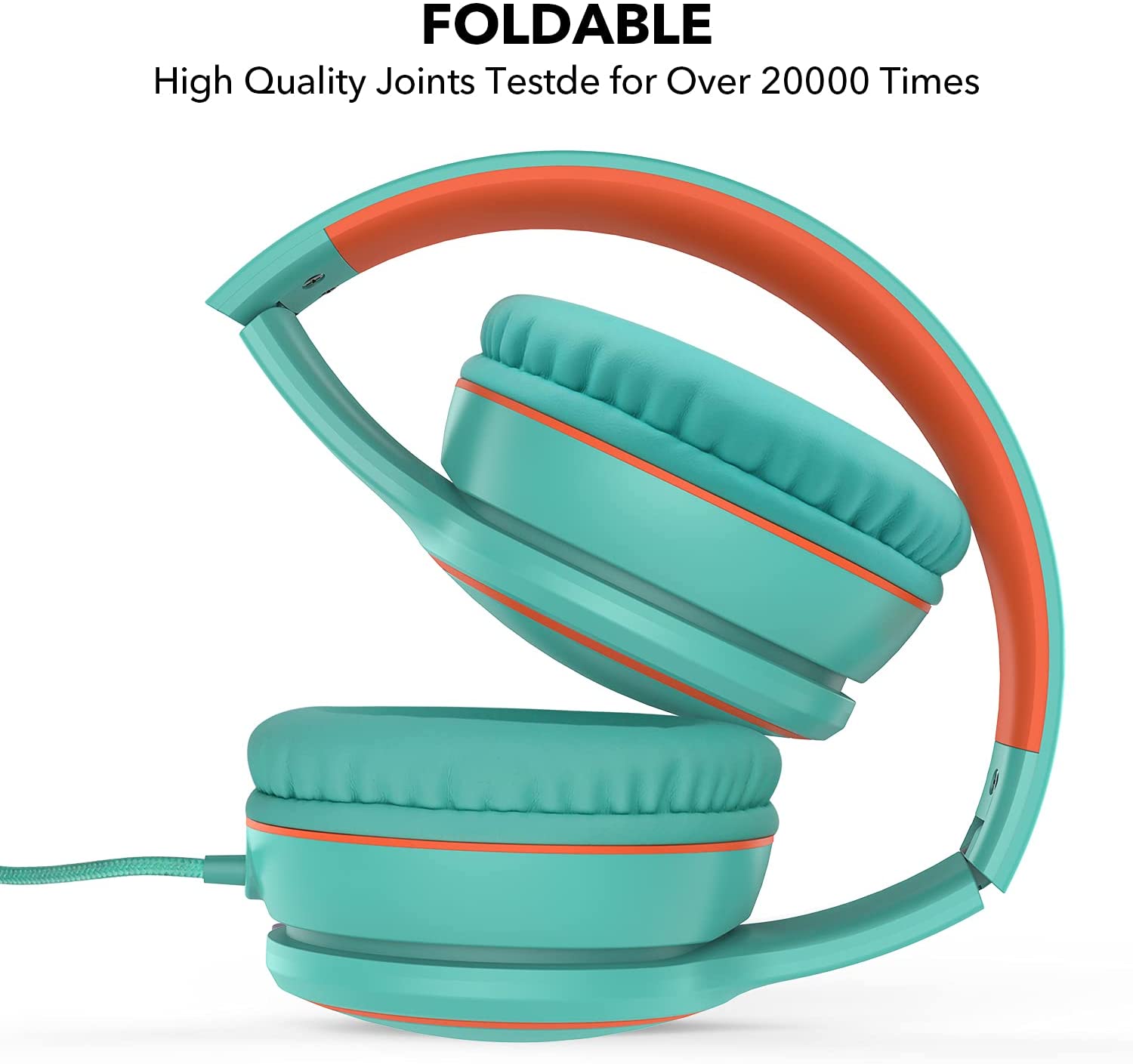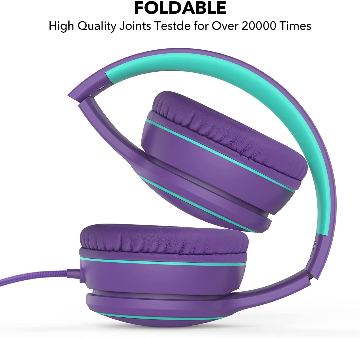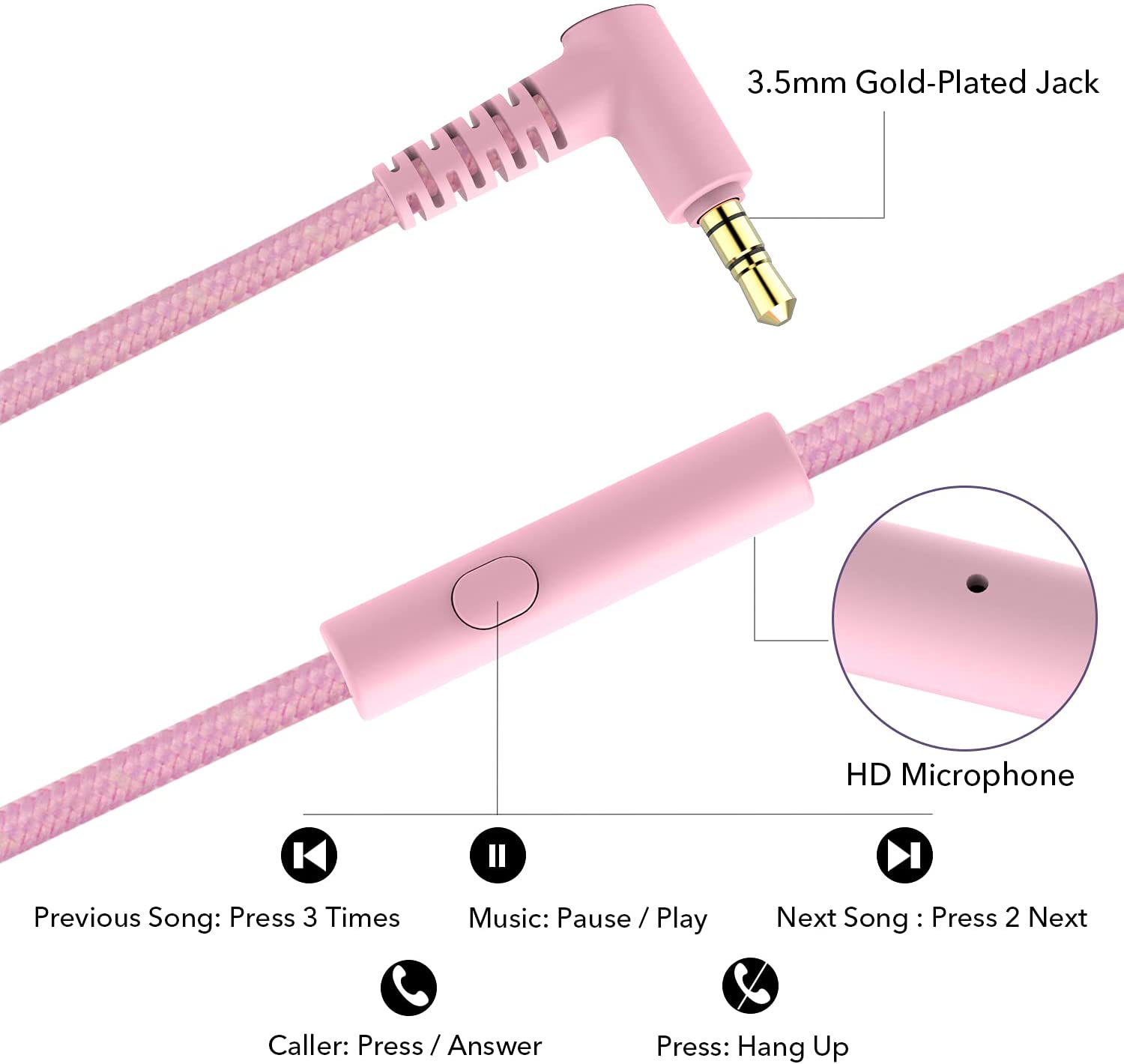 RORSOU R10 On-Ear Headphones with Microphone, Lightweight Folding Stereo Bass Headphones with 1.5M No-Tangle Cord, Portable Wired Headphones for Smartphone Tablet Computer MP3 / 4 (Black)