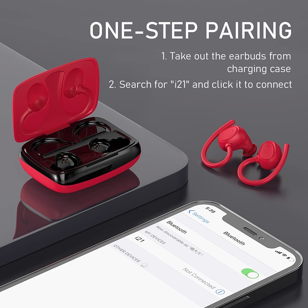 Wireless Earbud, Bluetooth 5.1 Headphones Sport Wireless Bluetooth Earphones in Ear Noise Cancelling Earbud with Mic Deep Bass, Earhooks Ear Buds IP7 Waterproof 48H Headset for Running Gym[2021 New]