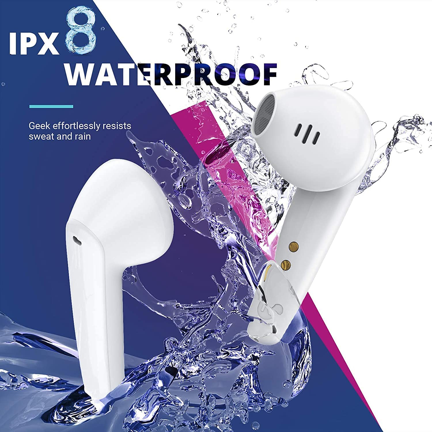 Wireless Earbuds Geek Bluetooth 5.0 Earbuds Deep Bass IPX8 Waterproof Sport Wireless Headphones 48H Playtime with Wireless Charging Case Type-C Dual Mics